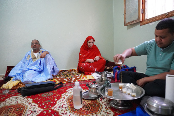Familia de Ali Salem Tamek, en el ritual tradicional saharaui del té.