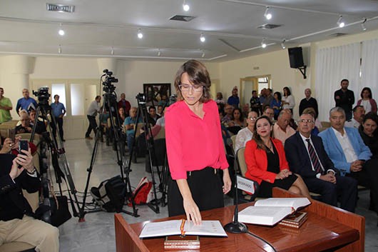 Eva de Anta de Benito (PSOE) ya es la nueva alcaldesa de Arrecife. En un pleno extraordinario celebrado este miércoles por la mañana, De Anta ha asumido el bastón de mando de la ciudad prometiendo trabajo en equipo con su grupo de gobierno, con la oposición, con los trabajadores del Ayuntamiento y con los vecinos de la capital.