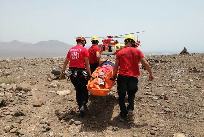 En concreto, se encontraba dentro de la caldera de Montaña Roja sin poder moverse debido a un fuerte golpe en el tobillo, por lo que los bomberos del Consorcio de Seguridad y Emergencias de Lanzarote procedieron a su extracción con ayuda de la camilla hasta la falda de la montaña, donde fue recogido por el helicóptero.