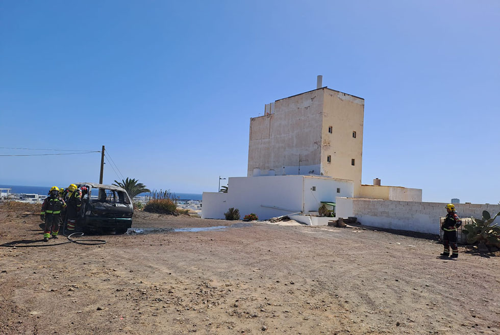 Efectivos del Consorcio de Seguridad y Emergencias han extinguido el incendio de un vehículo a la altura de la recuperadora de Lanzarote. La furgoneta que ardía en su totalidad y el humo del incendio afectaba a una vivienda cercana donde se encontraban dos personas mayores.