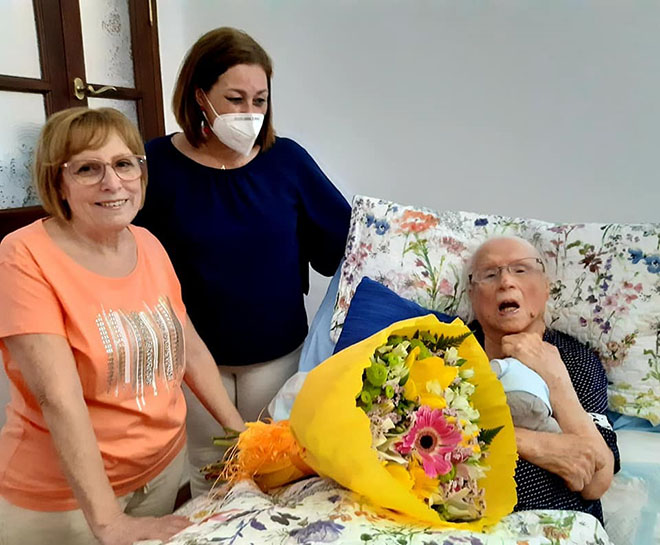 El pasado año, coincidiendo con el 107 cumpleaños, la familia invitó a la alcaldesa a acompañarle en la íntima celebración, en la etapa inicial del estado de alarma.