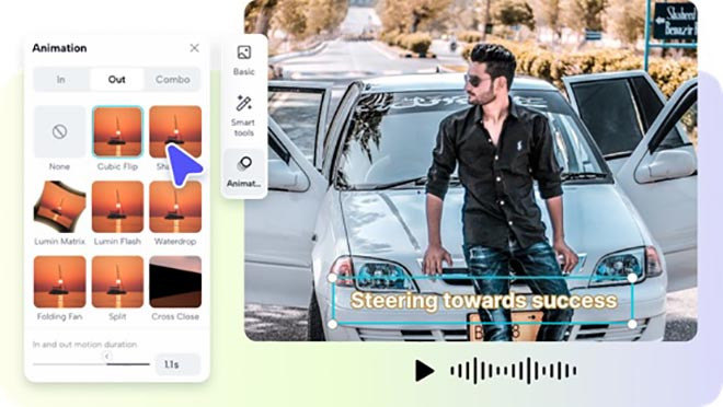 La IA genera al instante tu borrador de video usando tu instrucción y la imagen. Edita el ritmo, las transiciones y las mejoras para un resultado fluido. Automáticamente añade texto, subtítulos y superposiciones con diferentes fuentes y estilos.