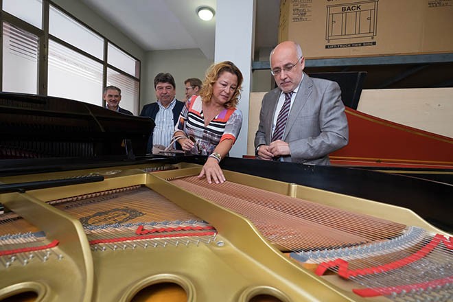 El presidente del Cabildo de Gran Canaria, Antonio Morales; la hija del tenor, Rosa Kraus; y el experto afinador Enrique Rapisarda, no ocultaron este martes su “emoción” por tener este instrumento, el primer objeto de su legado en ser trasladado a Gran Canaria para formar parte de la Fundación Alfredo Kraus, un proyecto con el que se ha comprometido el Cabildo y en el que están volcados el consejero de Presidencia, Pedro Justo Brito, y el de Cultura, Carlos Ruiz.