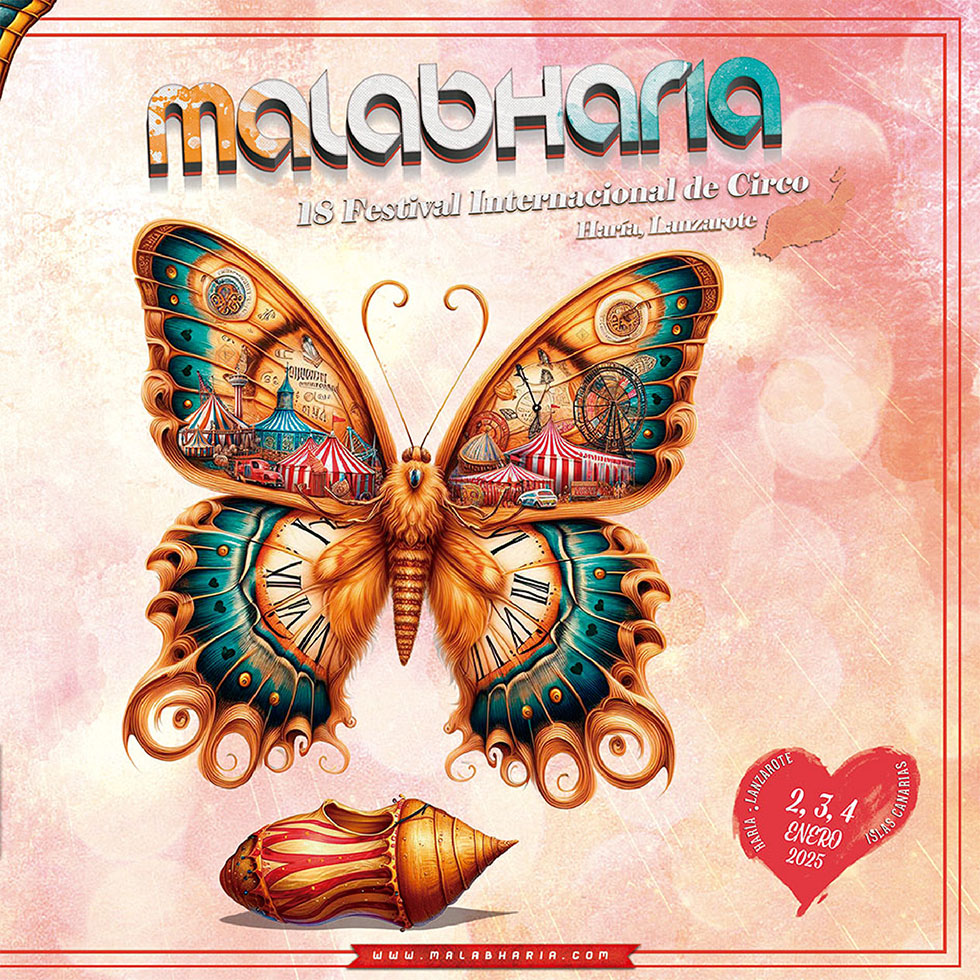 El Ayuntamiento de Haría presenta la XVIII edición del Festival Internacional de Circo Malabharía, que tendrá lugar los días 2, 3 y 4 de enero en diferentes puntos del municipio. Este evento cuenta con el patrocinio del Instituto Nacional de las Artes Escénicas y de la Música (Inaem), el Cabildo de Lanzarote y el Gobierno de Canarias.
