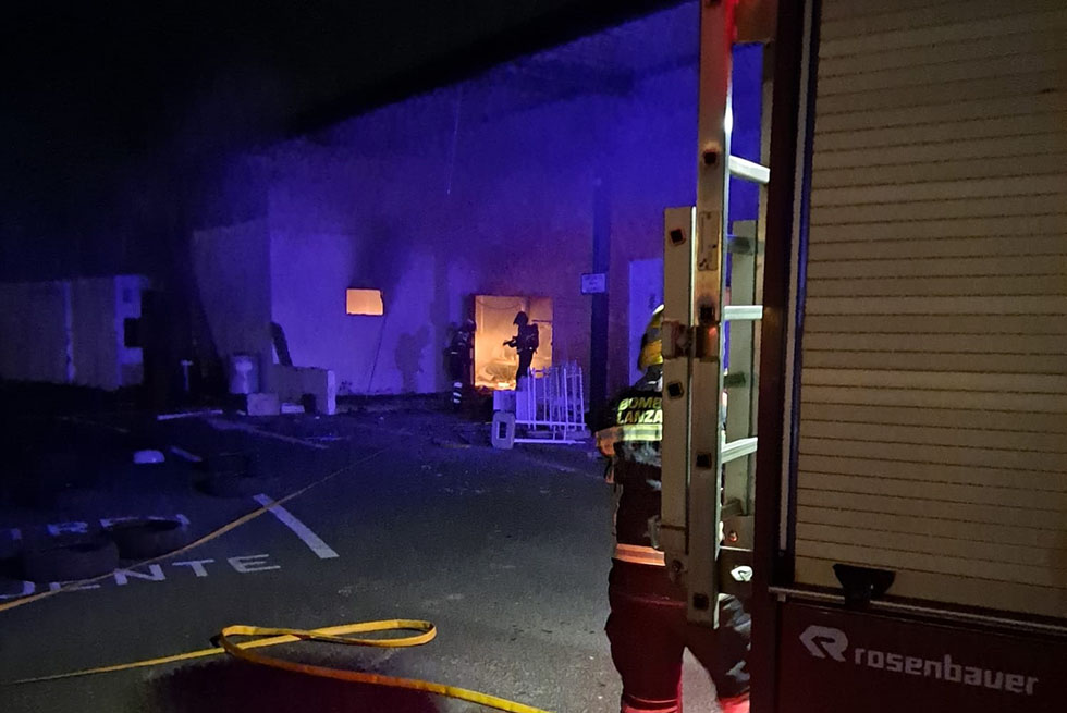 Al borde de la una de la madrugada se detectó una humareda en una nave industrial de Playa Honda. Los bomberos decidieron entrar por la puerta principal rompiendo el cristal, si bien cuando iban a entrar llegó el dueño y abrió una puerta trasera donde se podía acceder mejor al incendio.