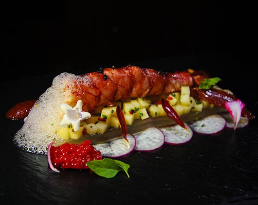 - Mi propuesta fue un carabinero cocinado a baja temperatura sobre un carpaccio de rabanitos agridulces, gelatina de agua de coco con lemon grass y jengibre, tartar de pina de El Hierro con chili y cebollino y un aire de agua San Pellegrino infusionado con fresas y rosas. Suena a muchos ingredientes y mucha elaboración pero es esto precisamente lo que se busca en los concursos: que a la vista y a la hora de comer parezca sencillo pero que en el fondo tenga mucha técnica y sabores sorprendentes y nuevos. Yo aposté por sabores de frutas tropicales y buen marisco fresco, ingredientes que son nuestro buque insignia en Canarias.