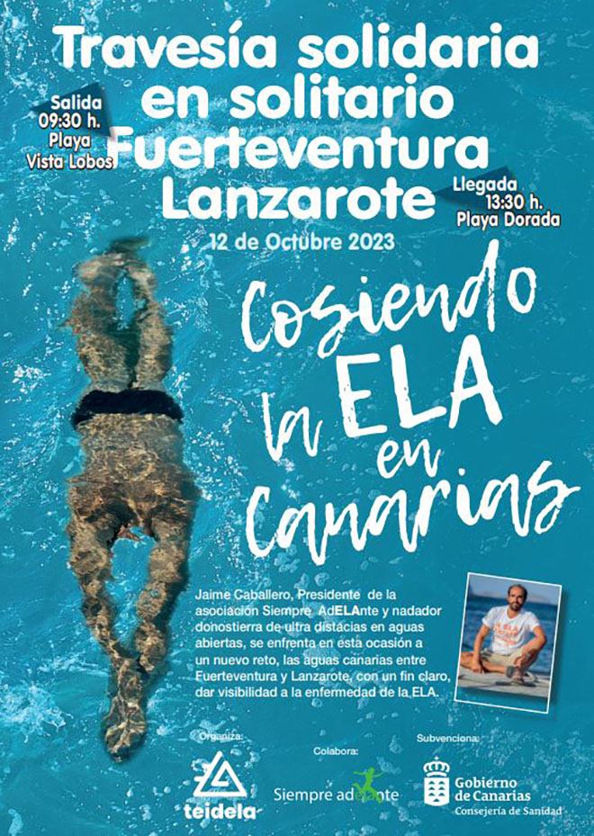 La Asociación TeidELA organizará un evento el próximo jueves, 12 de octubre, que tiene como objetivo visibilizar a los afectados de la enfermedad en Canarias. El nadador vasco de larga distancia y presidente de la asociación Siempre AdELAnte, Jaime Caballero, volverá a las Islas para completar un reto a nado que unirá Fuerteventura y Lanzarote.