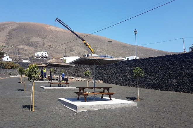 El Ayuntamiento de Tías ha dotado al pueblo de La Asomada de una nueva zona destinada al esparcimiento familiar. Desde esta semana, coincidiendo con las fiestas patronales de San José Obrero, este pueblo estrena su nuevo merendero dotado de mesas de madera con sombrillas de brezo, barbacoa, zonas verdes con árboles, todo junto al parque infantil.