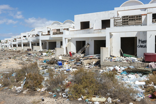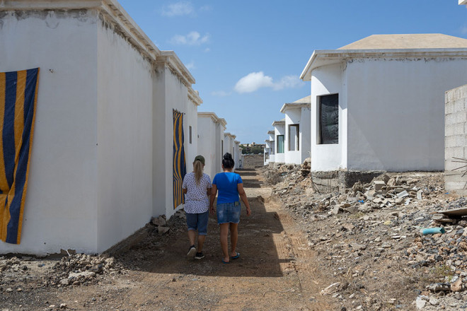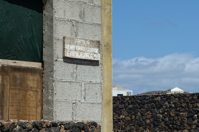 Además, cuando el Ayuntamiento de Teguise aprobó estas plazas, se había sobrepasado ya en seis veces el tope previsto para esa zona. La obra, por tanto, se quedó a medias. Se ejecutaron la mayor parte de las unidades pero no se llegaron a terminar. Tienen suelo, techo, habitaciones y huecos para las puertas y ventanas. Tienen todo lo que hace falta para una casa y nada de lo que conforma un hogar. Por supuesto, no hay luz ni agua corriente, no hay sanitarios ni puertas ni ventanas y, mucho menos, aceras o jardines.