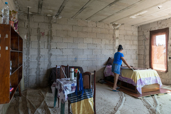 Gladys enseña su vivienda. “Perdona el desorden”, dice, pero el caso es que, lo poco que hay, está ordenado. Llama más la atención lo que no hay: pintura, suelo, sanitarios, cocina... Muestra “el único cuarto que no se inundó por las últimas lluvias. ¿Queda mucho por hacer aquí? “Yo diría que todo”, responde.