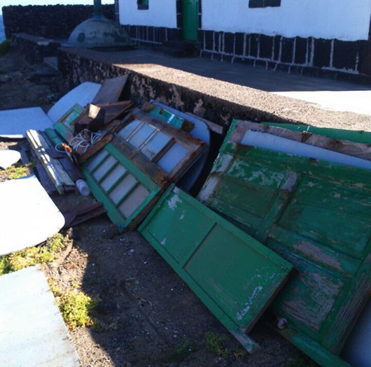 Otras puertas y ventanas fueron arrancadas y depositadas en el suelo junto al faro. El faro pertenece a la Autoridad Portuaria de Las Palmas, que pensaba iniciar su restauración hace años para dedicar el espacio a un pequeño hotel.