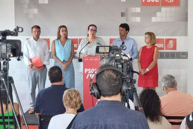 La exconsejera de Educación ha comparecido en Arrecife junto a la secretaria general del PSOE en Lanzarote y diputada nacional por la provincia de Las Palmas, María Dolores Corujo, así como el portavoz socialista de Educación en el Parlamento de Canarias, Marcos Hernández.