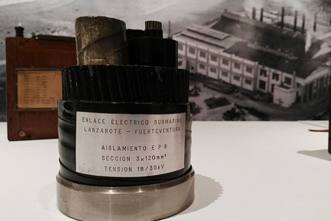 El progreso es un ser inquieto que se filtra por cualquier resquicio, incluso bajo el mar. Así lo demuestra el segmento del cable de corriente alterna de 120 mm de sección y aislado con goma de etileno propileno que formó parte del enlace eléctrico submarino entre Lanzarote y Fuerteventura.