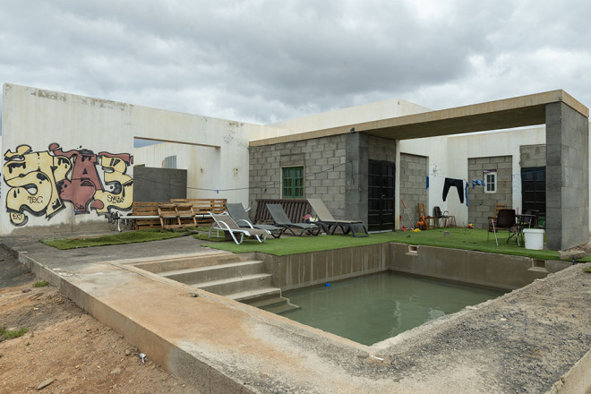 Una de estas urbanizaciones, junto a La Granja, nunca se terminó, pero desde hace unos meses está habitada. Las villas, aunque tienen unas vistas envidiables al estrecho de la Bocaina, no tienen luz ni agua, ni asfalto alrededor, ni puertas, ni ventanas ni sanitarios, ni están pintadas. Solo tienen la estructura, pero la falta de vivienda a precio asequible, principalmente en esta zona pero también en toda la Isla, ha llevado a hacerlas habitables.