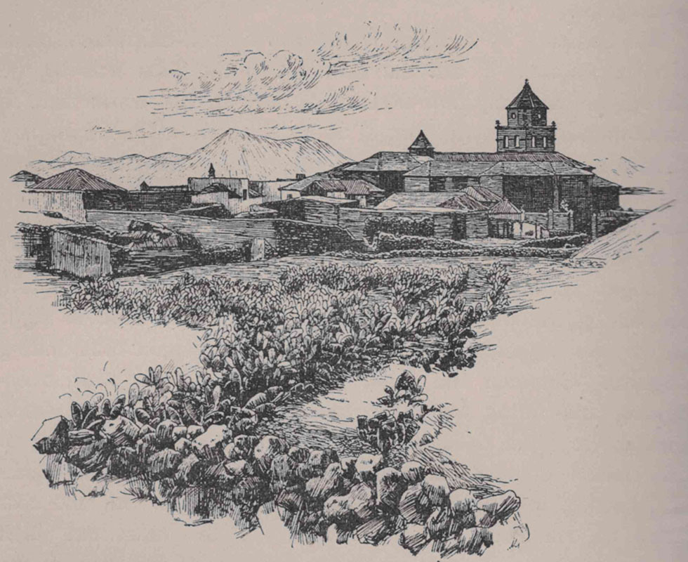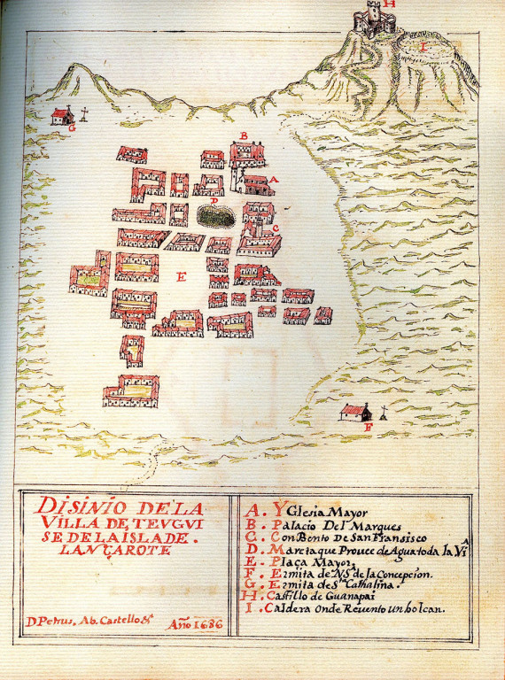Dibujo de Teguise realizado por Pedro Agustín del Castillo en 1686.