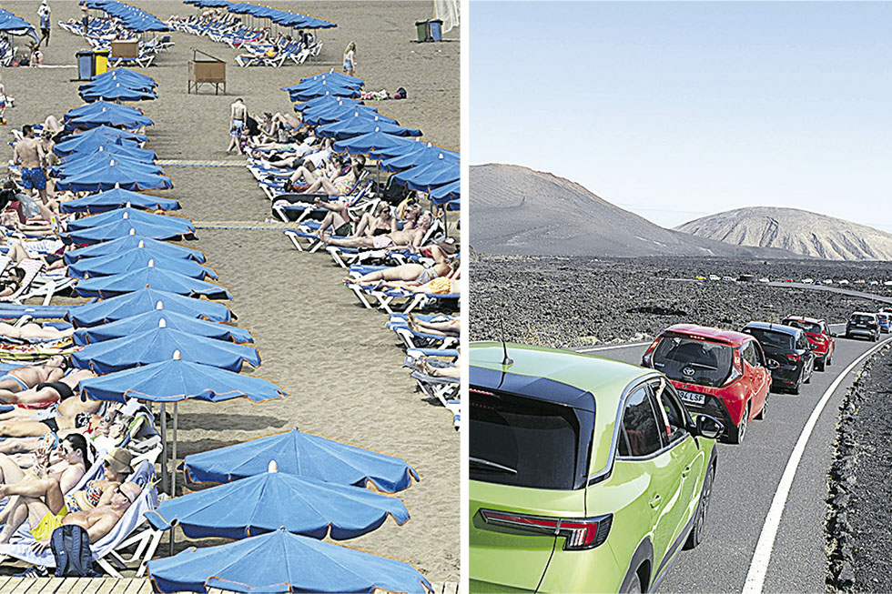 Los tiempos han cambiado y la masificación se capta y se difunde ahora a través de los teléfonos más que con las cifras. En la Isla se pueden ver lugares llenos de gente y de coches, que hasta hace poco eran desconocidos o poco transitados, como Las Grietas, Caldera Blanca o el Volcán del Cuervo, además de colas en Timanfaya, en las paradas de taxis, en el aeropuerto o en otros sitios turísticos, por no hablar de los espontáneos que aparecen en cualquier lugar, esté o no permitido el paso. Muchos síntomas distintos para una sola dolencia.