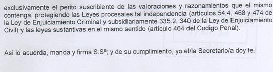 Además, la juez dice que no es admisible “valoración alguna por personas ajenas a la misma o no designadas como peritos”, como es el caso del presidente.