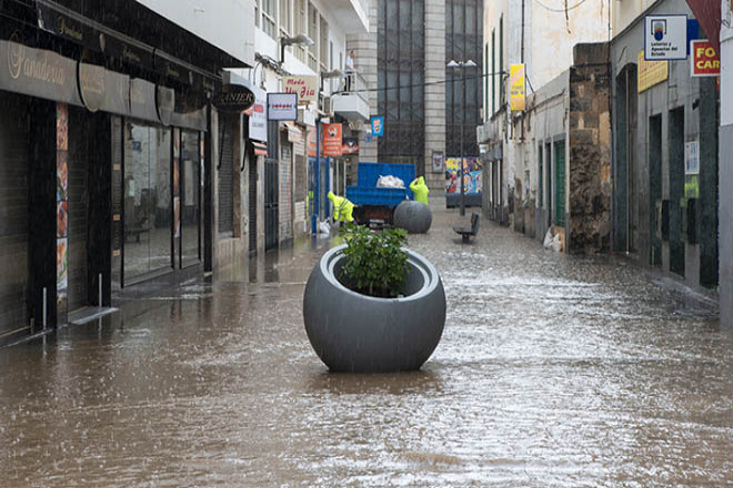Arrecife resulta especialmente afectada, con calles inundadas en el centro de la ciudad
