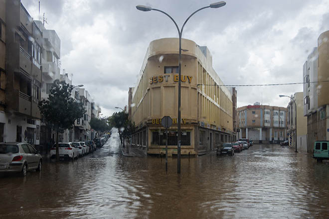 La lluvia vuelve a provocar graves inundaciones en Arrecife