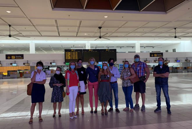 La presidenta de la Federación Turística de Lanzarote, acompañada por un grupo de agencias de viajes visitó este miércoles las instalaciones del Aeropuerto César Manrique-Lanzarote para conocer las medidas de seguridad implantadas en la terminal y su funcionamiento.