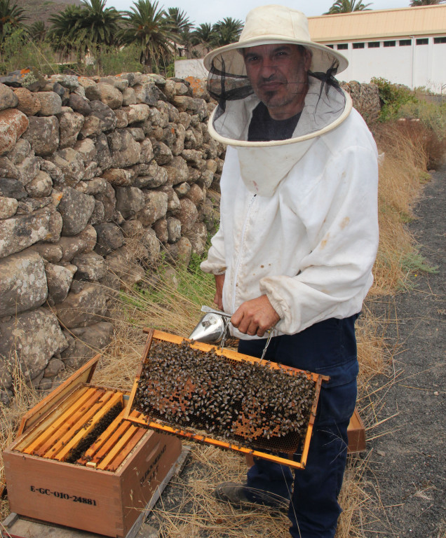 Manolo Zerpa siempre ha sido un apasionado de las abejas. Leía todo lo que llegaba a sus manos al respecto y aunque en un principio le faltaba de tiempo para adentrarse en esta aventura, ahora lleva más de ocho años con colmenas y ha impulsado la asociación de apicultores de Lanzarote. Cansado de dedicarse por completo a su trabajo de mecánico emprendió el camino a su pasión: la apicultura.