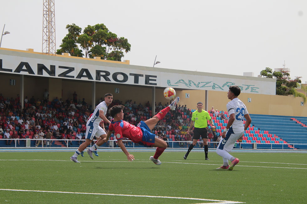 La segunda parte comenzó con una nueva ocasión para la UD Lanzarote, con un disparo de Nadjib desde la frontal del área que se estrelló en el larguero. Se tuvo que armar de paciencia el equipo rojillo en esta segunda parte, viendo como los jugadores del rival perdían tiempo en cada una de las acciones y el partido comenzaba a no tener ritmo.