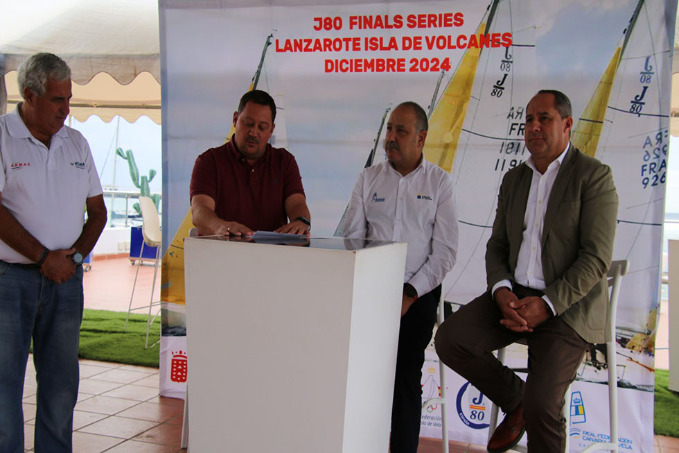 La presentación oficial de la J80 Series Finals 2024 – Trofeo Isla de Volcanes tuvo lugar en el mediodía de este martes en la terraza del Real Club Náutico de Arrecife. El presidente del club, Julio Romero, excusó su no presencia por motivos de índole personal, y el acto contó con la participación del consejero de Deportes del Cabildo de Lanzarote, Juan Monzón, el presidente de la Real Federación Canaria de Vela, Rafael Bonilla, y Óscar López en representación del Ayuntamiento de Arrecife, además de Manuel Torres como responsable de la sección náutica del Real Club Náutico de Arrecife.