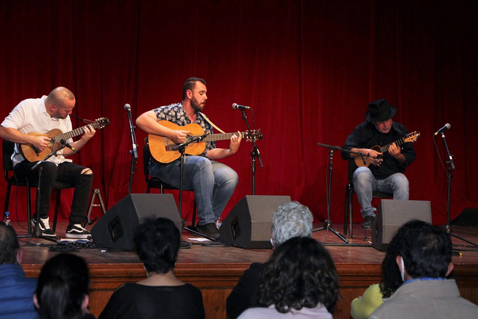Como el vaivén de las olas, de orilla a orilla, de Lanzarote a Fuerteventura, en un viaje musical de ida y vuelta, tres virtuosos, Domingo Rodríguez El Colorao, José Vicente Pérez y Adrián Niz, desafiaron la mar saltando el estrecho de La Bocaina para fundirse en un abrazo instrumental de cuerdas que levantó de sus sillas al público reunido este jueves en la Casa de la Cultura de Yaiza.