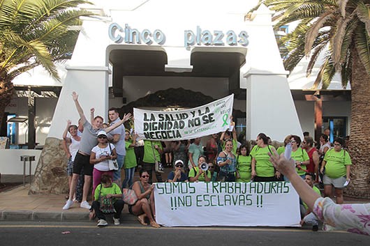 El colectivo de Las Kellys, que agrupa principalmente a camareras de piso, llevó a cabo este jueves por la tarde una protesta frente al Nordhotel Cinco Plazas de Puerto del Carmen.