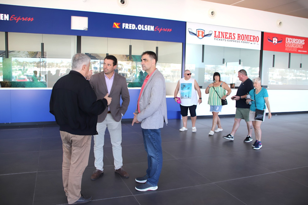 Las oficinas de las navieras que unen Lanzarote y Fuerteventura empezaron a atender desde este martes en la nueva estación marítima del Puerto de Playa Blanca, así lo comprobaron el alcalde de Yaiza, Óscar Noda y el recién nombrado director de Puertos Canarios, José Moreno, que asimismo visitaron los locales de las empresas de vehículos de alquiler, también asentadas en la moderna terminal de pasajeros, un ruego que puso de manifiesto Óscar Noda el pasado mes de octubre en el seno del Consejo Asesor de Puertos Canarios, donde reivindicó la operatividad al cien por cien de las instalaciones portuarias, concluidas hace ya un año.