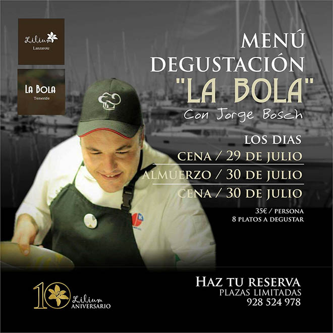 El restaurante Lilium, ubicado en el puerto deportivo Marina Lanzarote, ofrece los próximos días 29 y 30 de julio un menú degustación con platos del chef Jorge Bosch, del restaurante tinerfeño ‘La Bola’.