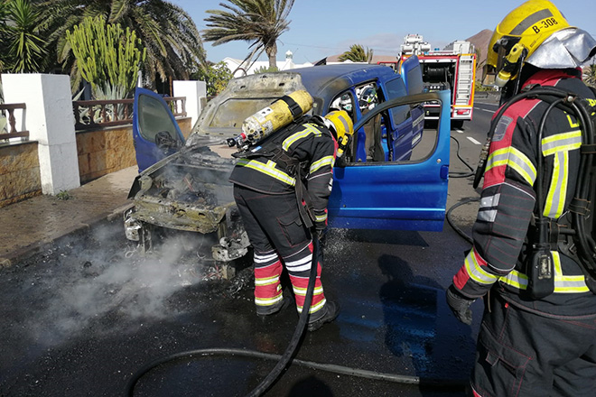 El vehículo se encontraba en una zona de aparcamiento de la vía en dirección a Tahíche, si bien no afectaba a la circulación del tráfico. Los bomberos procedieron a su extinción con agua pulverizada hasta que quedó totalmente extinguido el fuego. El incendio afectó también al muro de una vivienda soltando algunas lozas. Efectivos de la Guardia Civil de Tráfico y Protección Civil estuvieron presentes en el lugar del siniestro.