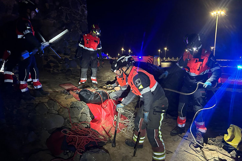 Los efectivos del Consorcio de Seguridad y Emergencias de Lanzarote procedieron a acceder hasta los accidentados para una primera valoración.