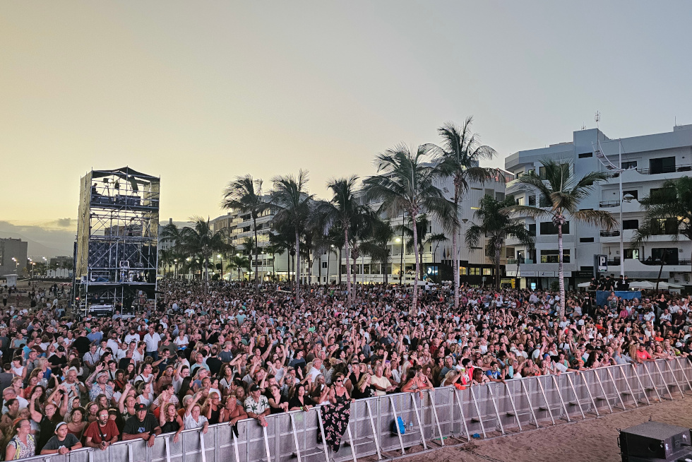 La música y el arte se dieron cita anoche en la playa del Reducto, donde más de 20.000 personas vibraron con el esperado concierto de El Arrebato, uno de los eventos más destacados de las Fiestas de San Ginés 2024.
