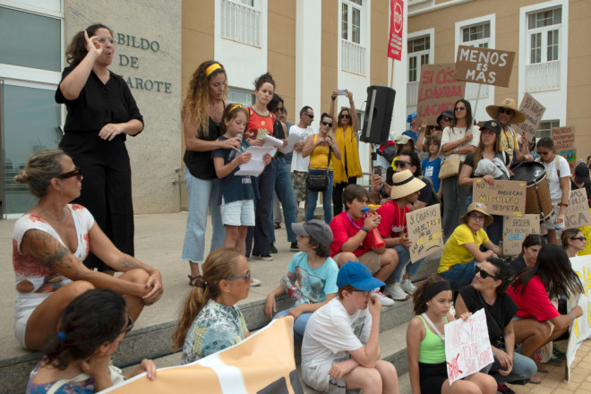 Entre los lemas que se pudieron ver: ‘Por nuestro patrimonio cultural y natural’, ‘Canarias for sale’, ‘Por una mejor gestión y un mundo mejor’, ‘Lanzarote se muere de éxito’, ‘Nuestra biodiversidad se acaba’, ‘Éramos pocos y parió la avaricia’, ‘Canarias es increíble pero no es infinita’, ‘El agua de las piscinas para las batatas’, ‘Menos hoteles y más viviendas’ o ‘Canarias ya no es un paraíso’.