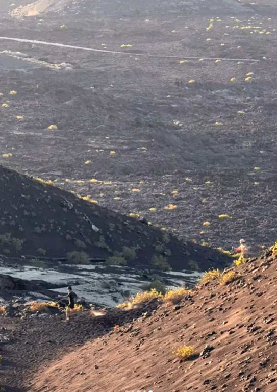 La resolución de Medio Ambiente señala que la mayor afección al entorno natural se produjo en la zona de La Cazoleta, donde, según la denuncia de los agentes, el material volcánico es “bastante frágil, compuesto por cenizas y rofe”, y se observa cómo se degradó el terreno “dejando huellas al pisotear” por lugares antes no transitados.