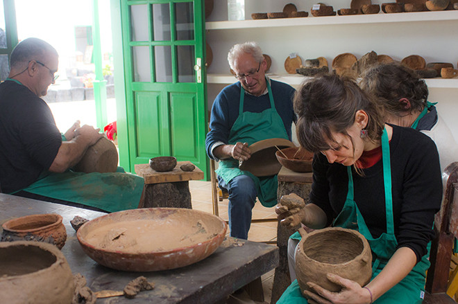 Cuando te has acabado el café, la cerveza o el vino, sentado frente al increíble paisaje de La Geria, ves a tus hijos llegar con un cuenco de barro, un marcapáginas, un pequeño bote de mojo, un frasco de sales o una roseta, satisfechos y divertidos por el buen rato disfrutado. “¿La semana que viene podemos volver?”.