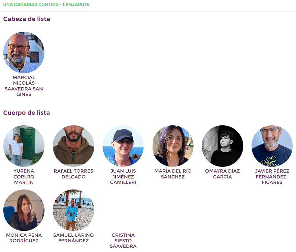 Otros rostros conocidos son Omayra Díaz, que fue concejal de Somos Lanzarote en el Ayuntamiento de Teguise, o Juan Luis Jiménez Camilleri, con trayectoria en el ámbito sindical. De la lista ‘Una Canarias Contigo-Lanzarote’ también forman parte Rafael Torres Delgado, Javier Pérez Fernández-Figares, Mónica Peña Rodríguez, Samuel Lariño Fernández y Cristina Siesto Saavedra.