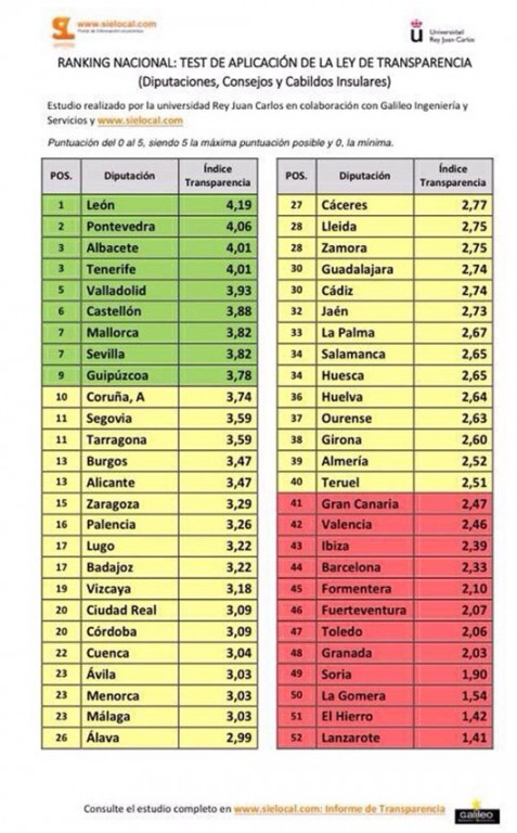 Nueva Canarias ha destacado que un informe que recoge los datos y conclusiones obtenidas en el test de aplicación de la Ley de Transparencia en las diputaciones y cabildos sitúa al Cabildo de Lanzarote como el menos transparente.