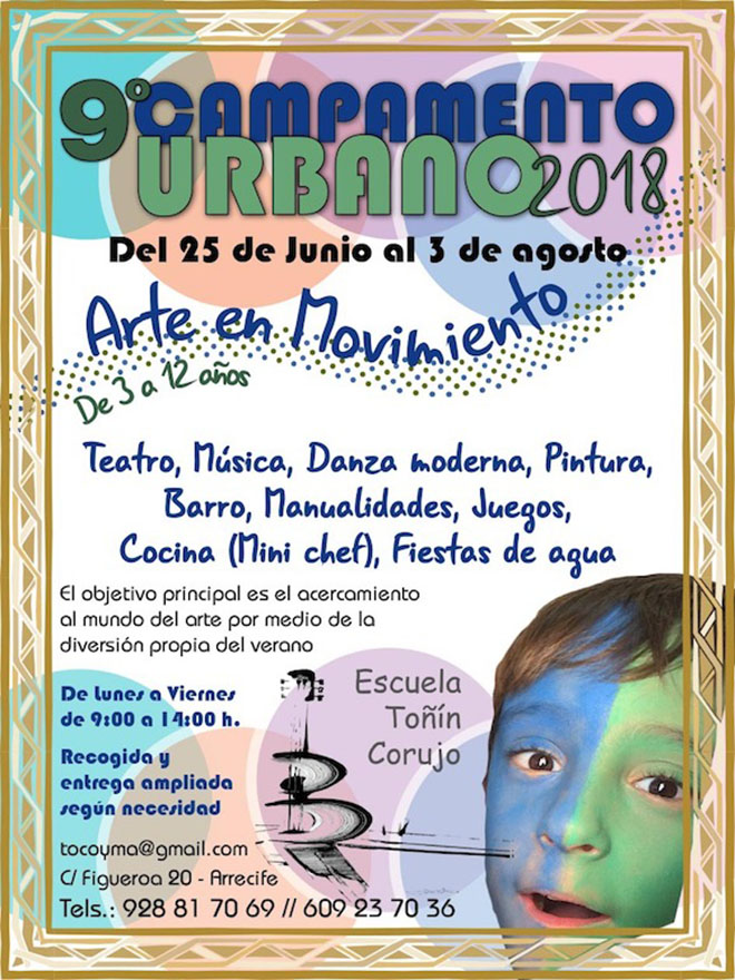 Tocoyma, la Escuela de música de Toñín Corujo, organiza un año más el campamento "Arte en movimiento" para niños y niñas de entre 3 y 12 años. El campamento se organiza por semanas, comienza el 25 de junio y finalizará el 5 de agosto.