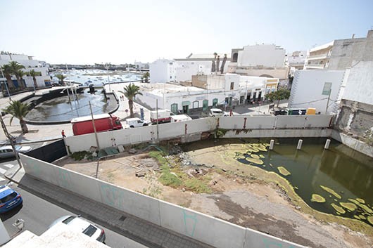 Siete años lleva paralizada la obra de un edificio de 30 viviendas y locales comerciales enclavado junto al Charco de San Ginés, una de las zonas emblemáticas de Arrecife y más fotografiada por los turistas.