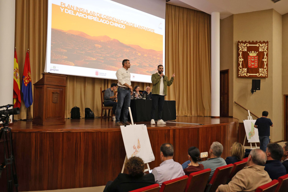El Salón de Actos del Cabildo de Lanzarote acogió este jueves la presentación del borrador del Plan Insular de Ordenación de Lanzarote y el Archipiélago Chinijo (PIOT) al sector primario de la isla. El equipo redactor de Gesplan expuso, ante el numeroso público asistente, las principales claves de este documento fruto de un exhaustivo proceso de actualización y que recoge los cambios producidos en el territorio, la sociedad y el marco legislativo de la planificación estratégica.