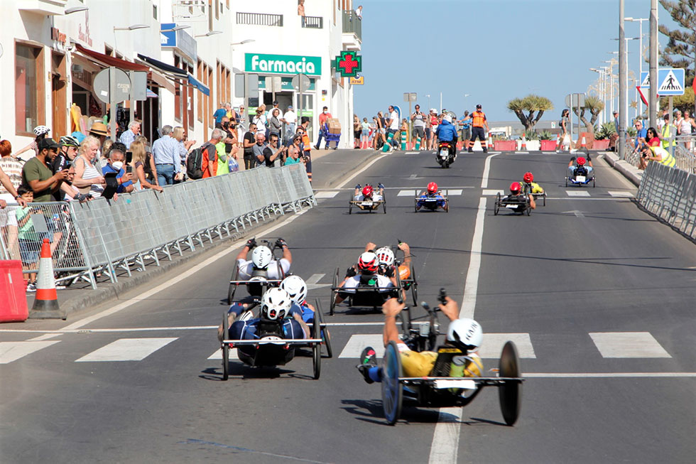 El público del sur de Lanzarote se reencontró este fin de semana con el espectáculo que ofrece el ciclismo adaptado, "filipante", decía un aficionado apostado junto a la valla de seguridad mientras pasaban los handbikers por la bajada del circuito en el centro de Playa Blanca a más de 55 kilómetros por hora, segundos antes de frenar para coger la primera curva de un circuito de 2,2 kilómetros que encarna “la pasión” y “fuerza” del deporte inclusivo, vigor y superación que la afición sureña aplaudió sin parar durante la mañana del sábado y también en la contrarreloj previa del viernes por la tarde.