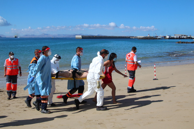 Playa Blanca prueba su respuesta ante emergencias en la playa del pueblo