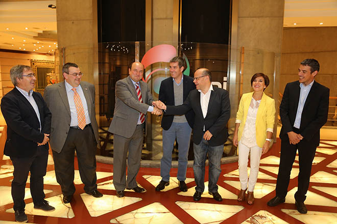 El presidente del Gobierno de Canarias, Fernando Clavijo; el secretario general de CC, José Miguel Barragán; y el secretario de Acción Exterior de la formación insular, Narvay Quintero, han sido recibidos por el presidente del PNV, Andoni Ortuzar; el secretario de la ejecutiva, Koldo Mediavilla; el responsable del Área de Organización, Joseba Aurrekoetxea, y la europarlamentaria Izaskun Bilbao.
