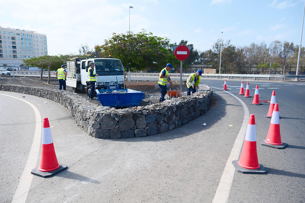 El Ayuntamiento de Arrecife, a través de operarios de la Concejalía de Obras Púbicas, ha culminado en esta semana los trabajos de reconstrucción del muro en piedra volcánica junto a la Vía Medular que resultó parcialmente derribado por un accidente de circulación.