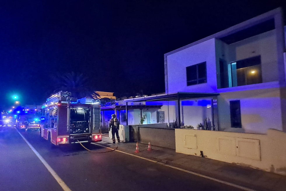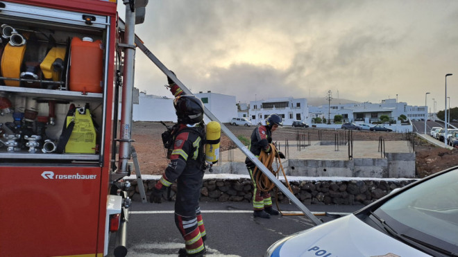 Los bomberos del Consorcio de Seguridad y Emergencias de Lanzarote rescataron a un chico de la azotea de una vivienda que sufrió un incendio, el sábado por la noche.