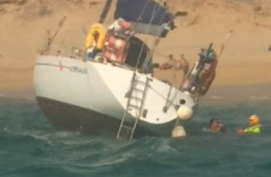Rescatados cinco tripulantes y un perro de un velero que encalló en Papagayo