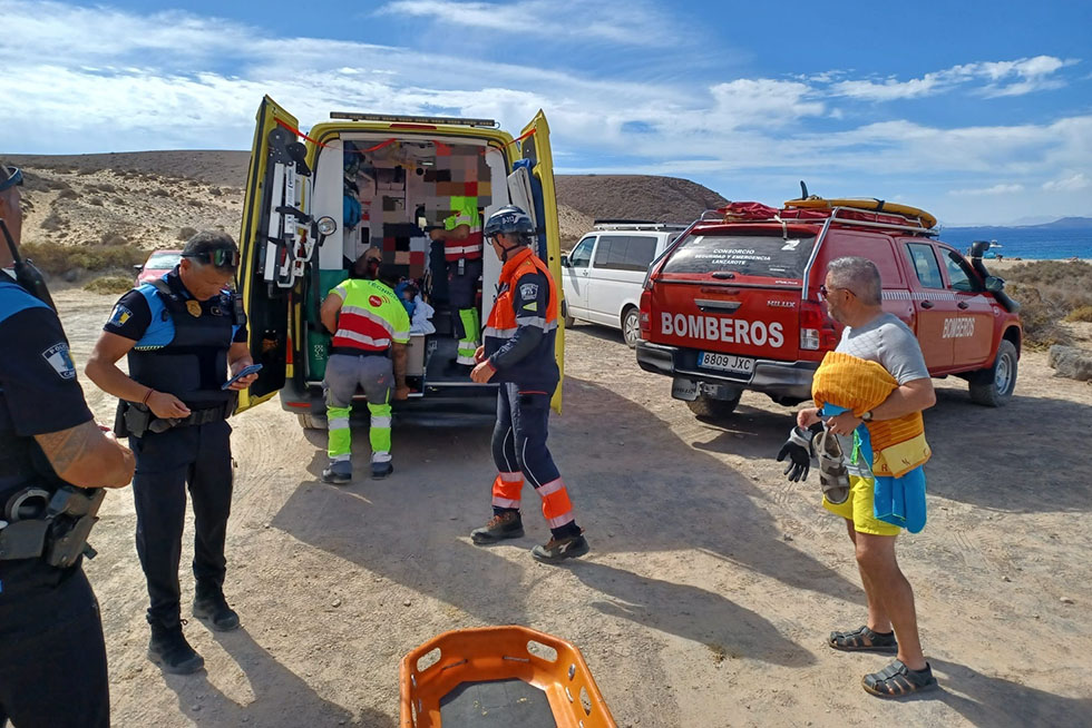 Efectivos del Consorcio de Seguridad y Emergencias de Lanzarote han rescatado este jueves a una persona que se había sufrido una caída en las rocas cerca de Playa Mujeres, en Playa Blanca.