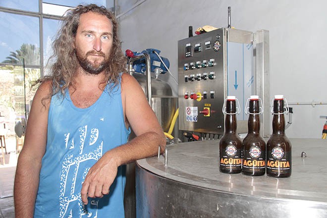 La Agüita que se produce en Los Aljibes de Tahiche fue la primera cerveza artesana de la isla. Sólo se vende en barriles y en los dos establecimientos que gestionan los propietarios en Tahiche y Puerto del Carmen. Tienen 7.000 litros en stock, de 3 variedades: una pilsen rubia y refrescante, una pale ale tostada y una marsen. “Cero conservantes, cero pasteurización”, recuerda Hernán Fondado. El único CO2 es el de la fermentación.